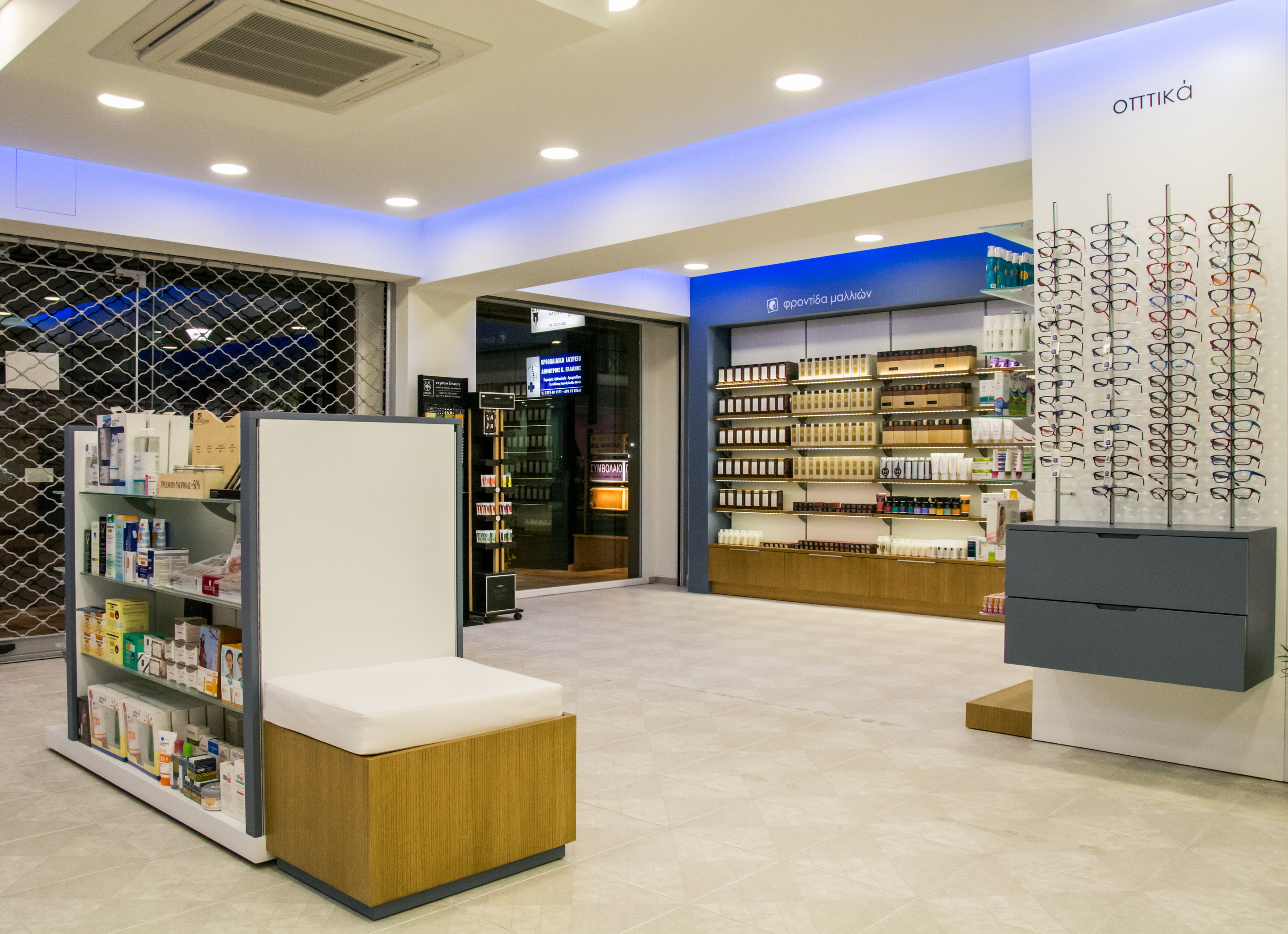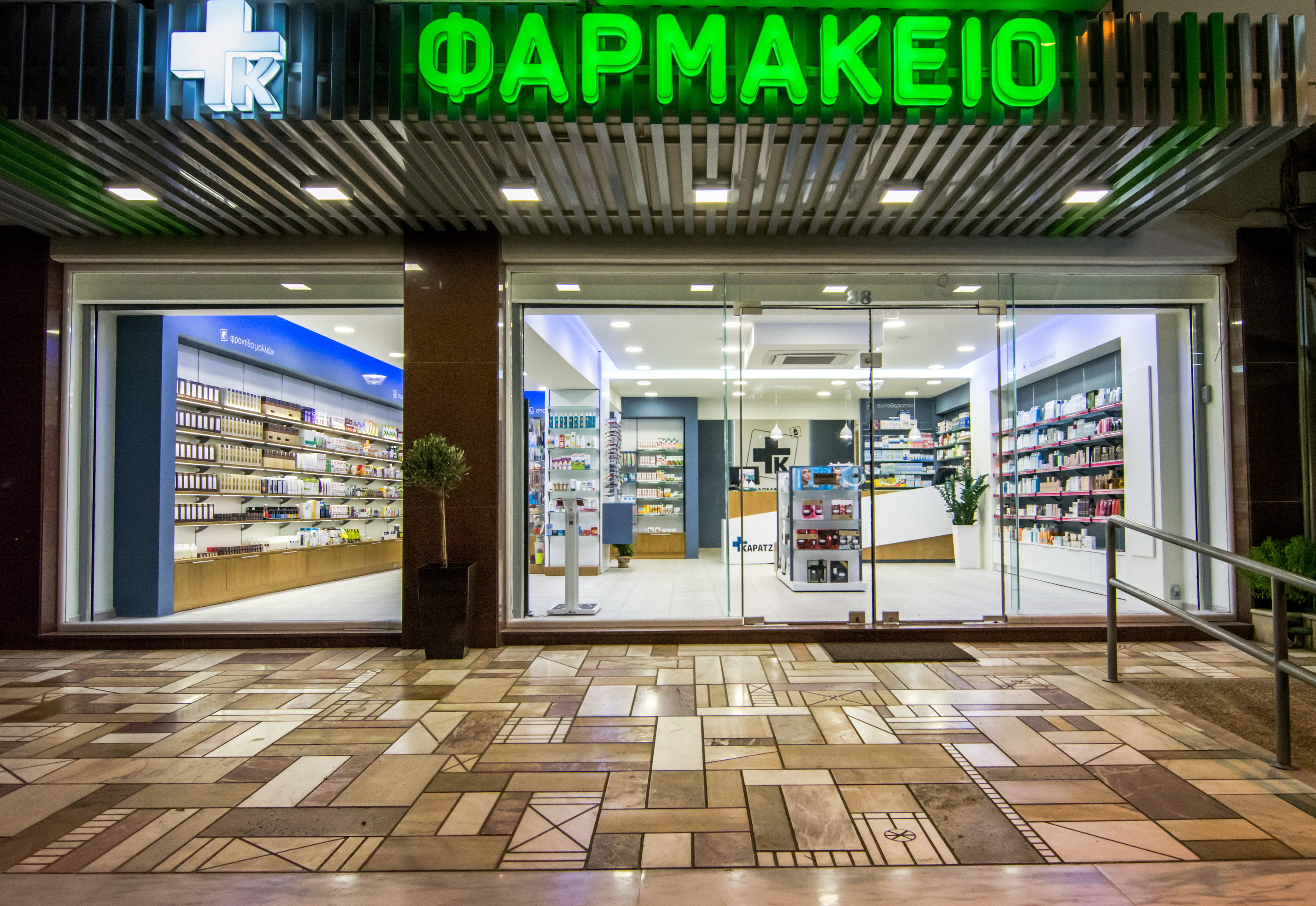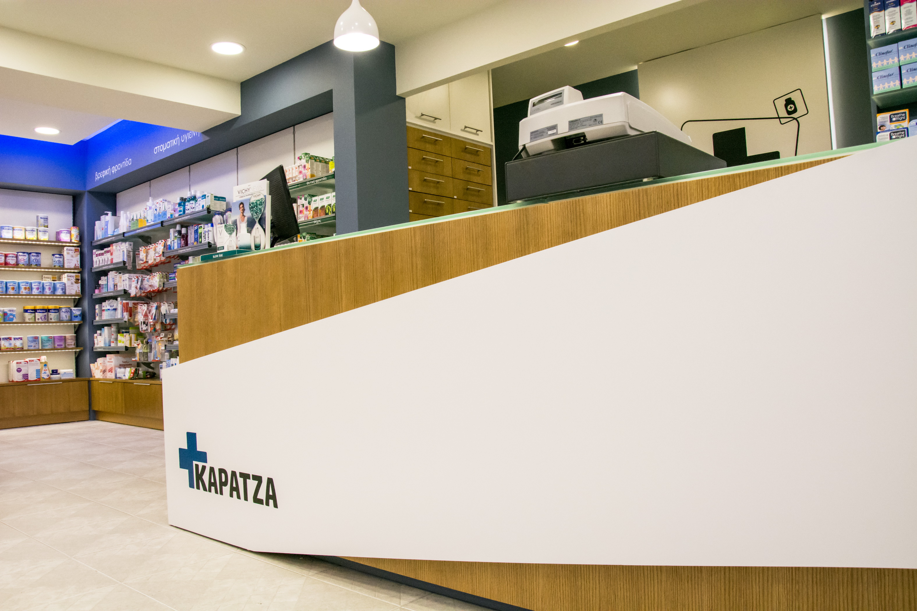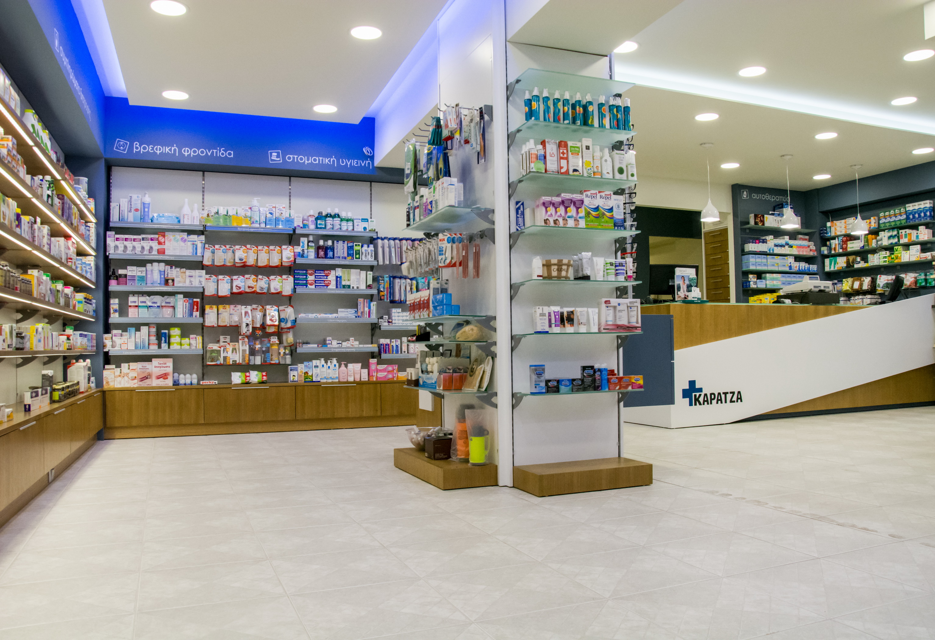 Στην Αρτάκη της Εύβοιας, το φαρμακείο της κας. Καρατζά μεταμορφώθηκε από ένα συνοικιακό φαρμακείο σε ένα σύγχρονο και άνετο κατάστημα. Ακολουθήσαμε το όραμα της φαρμακοποιού για ένα νέο χώρο, με μοντέρνο ύφος και ικανό να προσφέρει ποιοτικές υπηρεσίες υγείας στους πελάτες του. Έτσι λοιπόν το νέο φαρμακείο της κας. Καρατζά στεγάζεται πλέον σε νέο κατάστημα (140 τ.μ), που το χαρακτηρίζει η σύγχρονη αισθητική, οι μεγάλοι και εννιαίοι χώροι και αποπνέει φιλικότητα.
