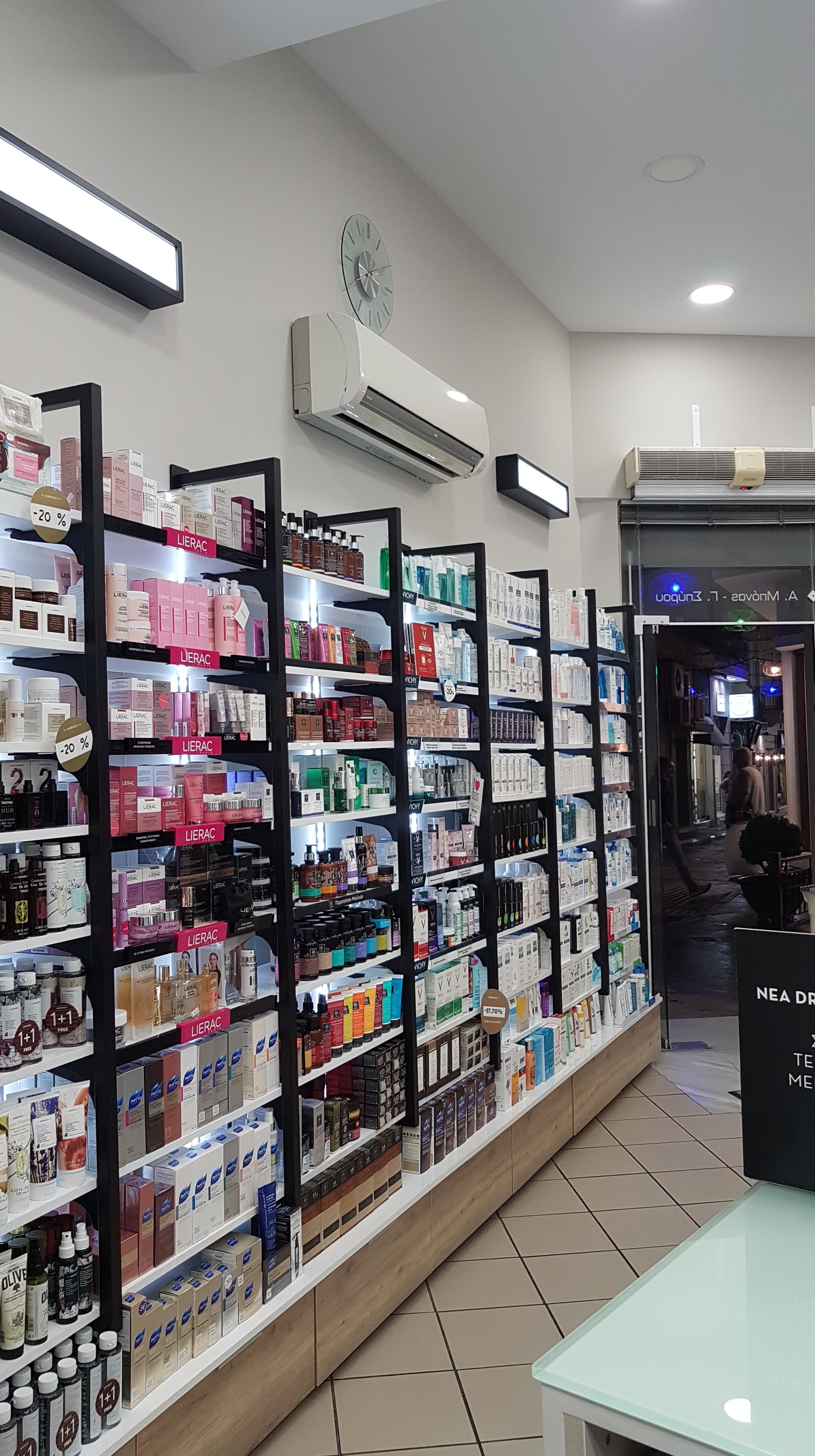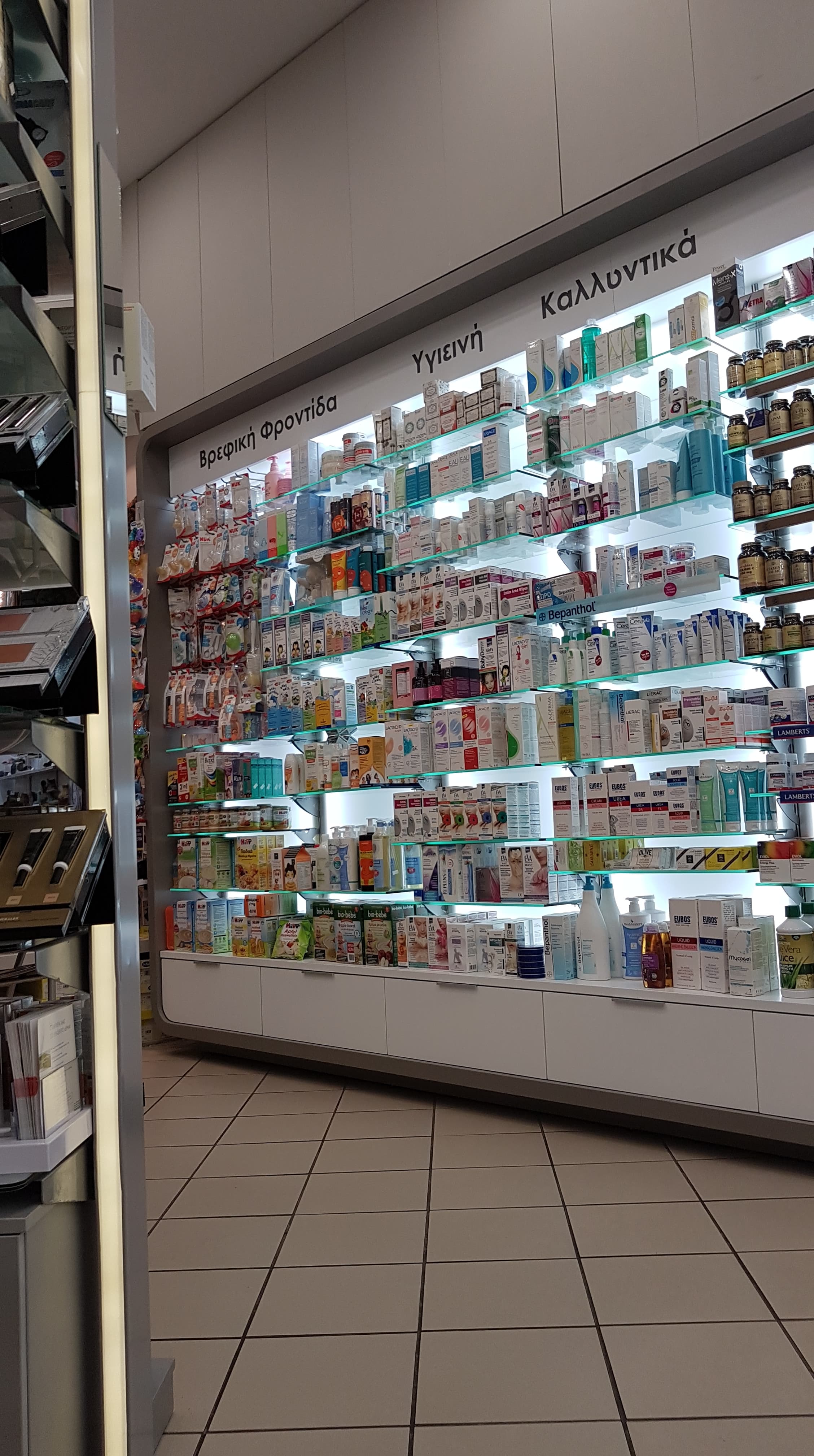 Το αποτέλεσμα είναι ένα σύγχρονο και άριστα οργανωμένο φαρμακείο με έμφαση σε ζεστούς χρωματισμούς και υλικά. Η προβολή των προϊόντων γίνεται από custom made εκθετήρια που ξεχωρίζουν με την γραμμή τους και τον φωτισμό. Η κεντρική σάλα του φαρμακείου έχει αξιοποιηθεί πλήρως στο θέμα της προβολής προϊόντων, παράλληλα όμως υπάρχουν ανοικτοί χώροι για τον πελάτη ώστε να περιηγηθεί με άνεση.