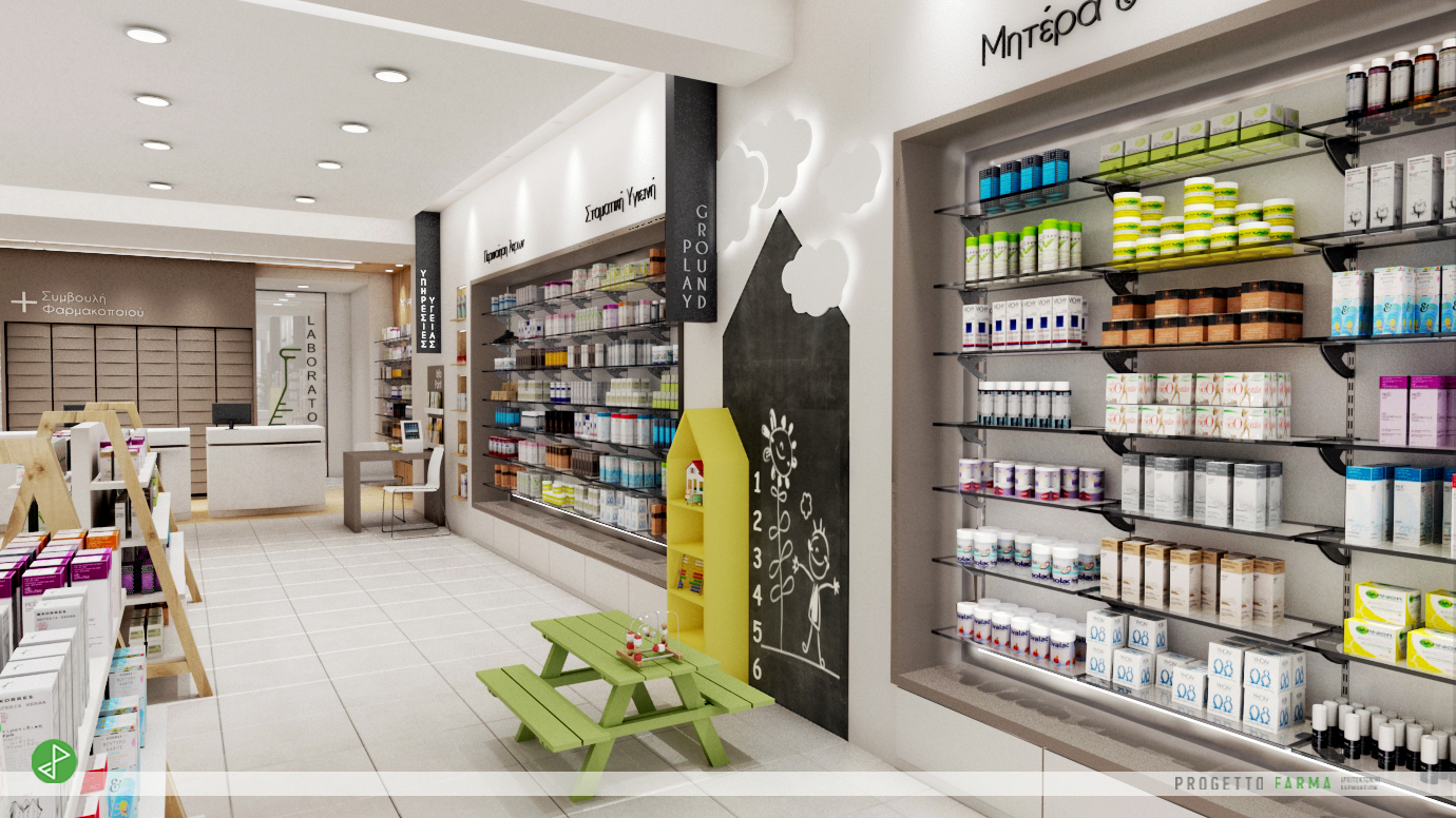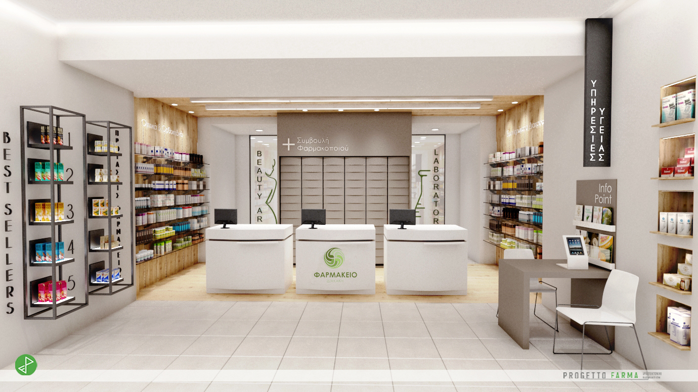 · Επίπλωση φαρμακοπωλείου και βοηθητικών χώρων από την Progetto Farma.