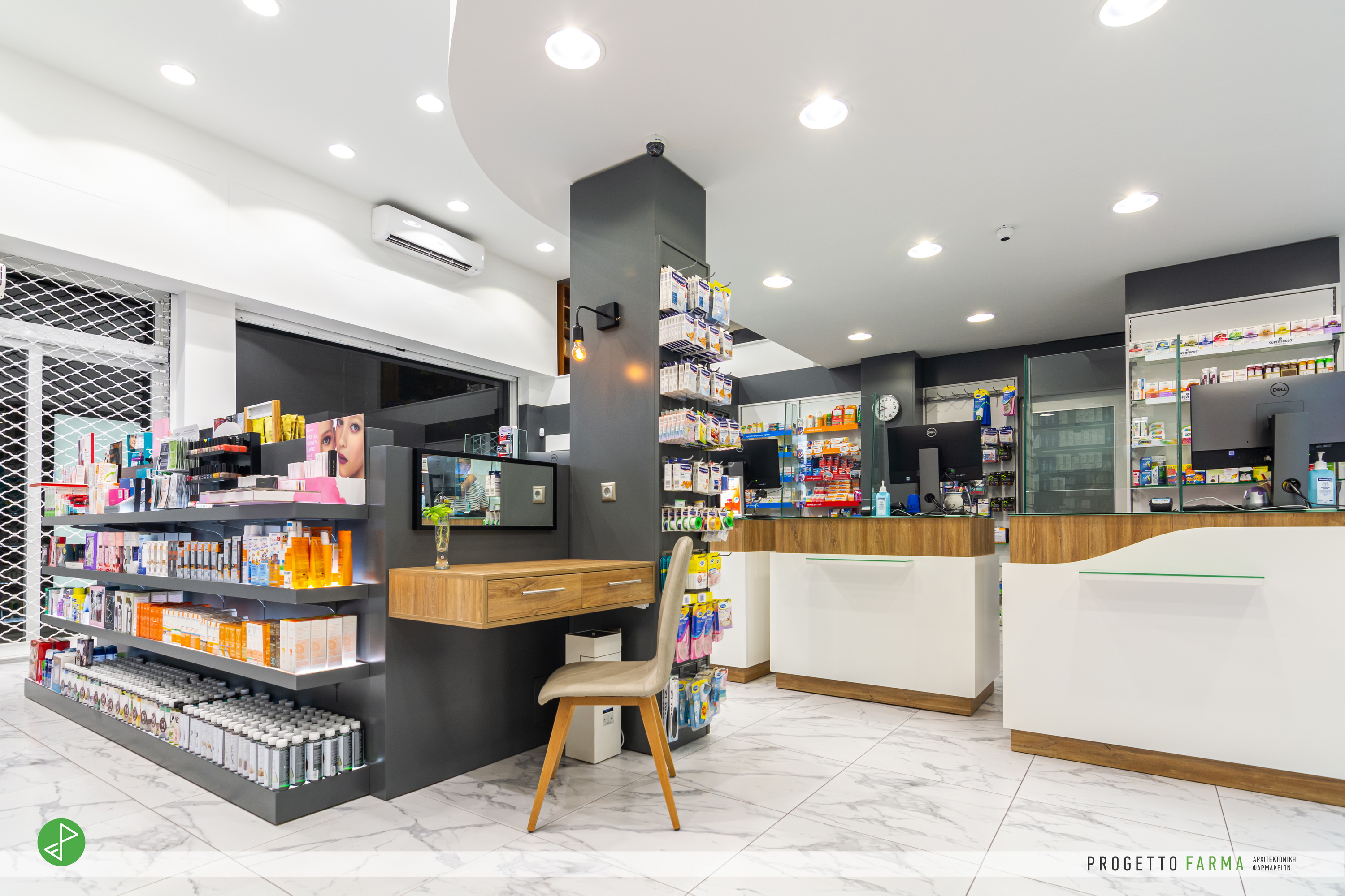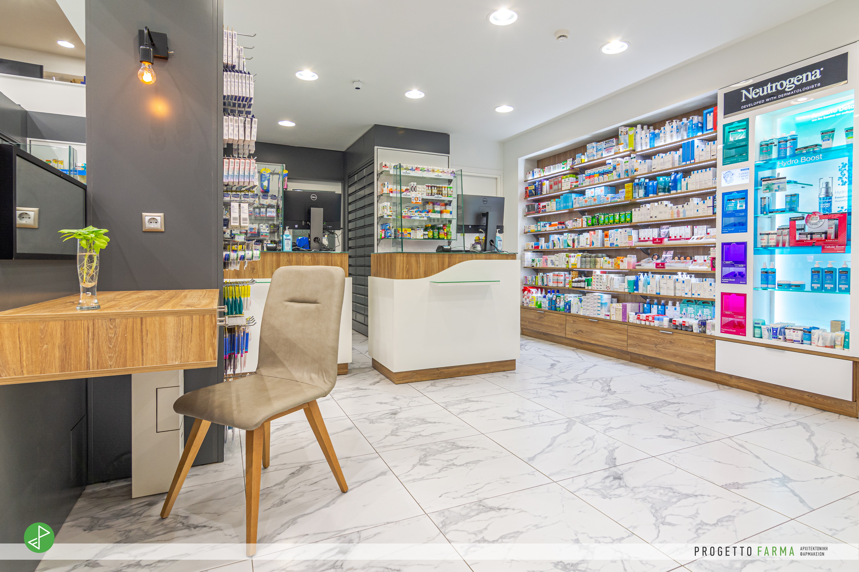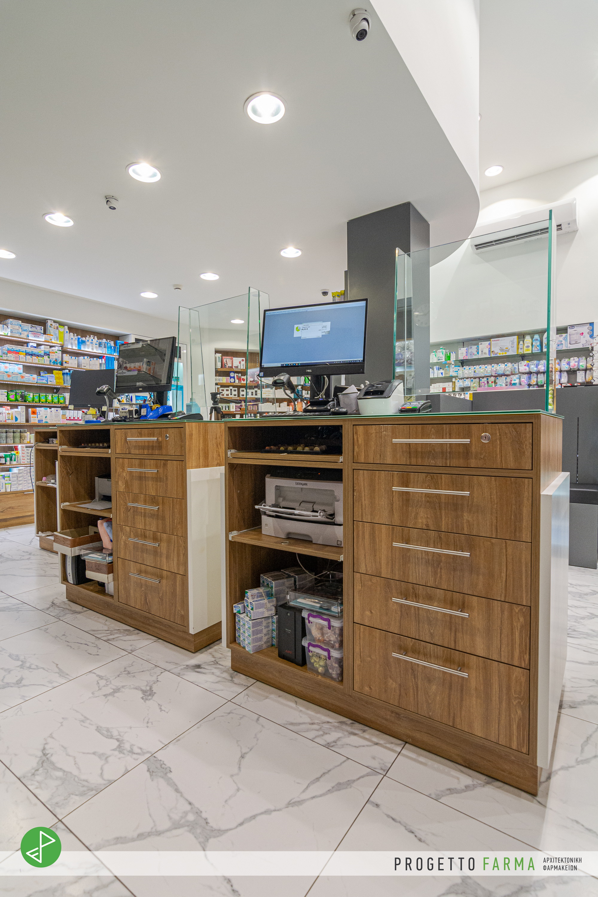 · Επίπλωση φαρμακοπωλείου και βοηθητικών χώρων από την Progetto Farma.