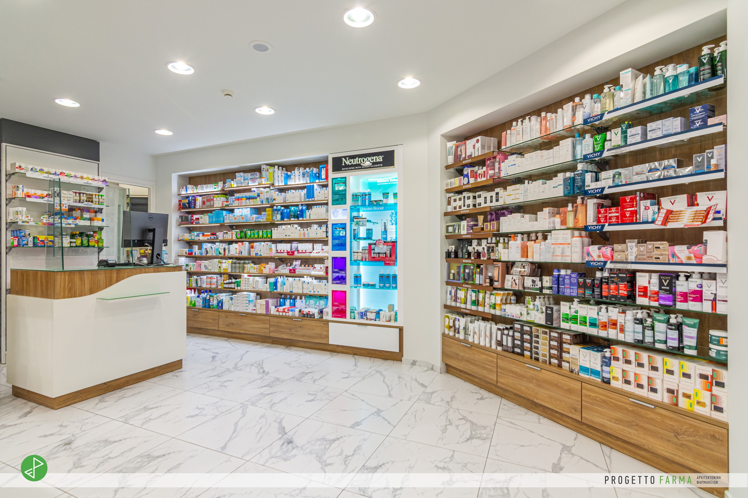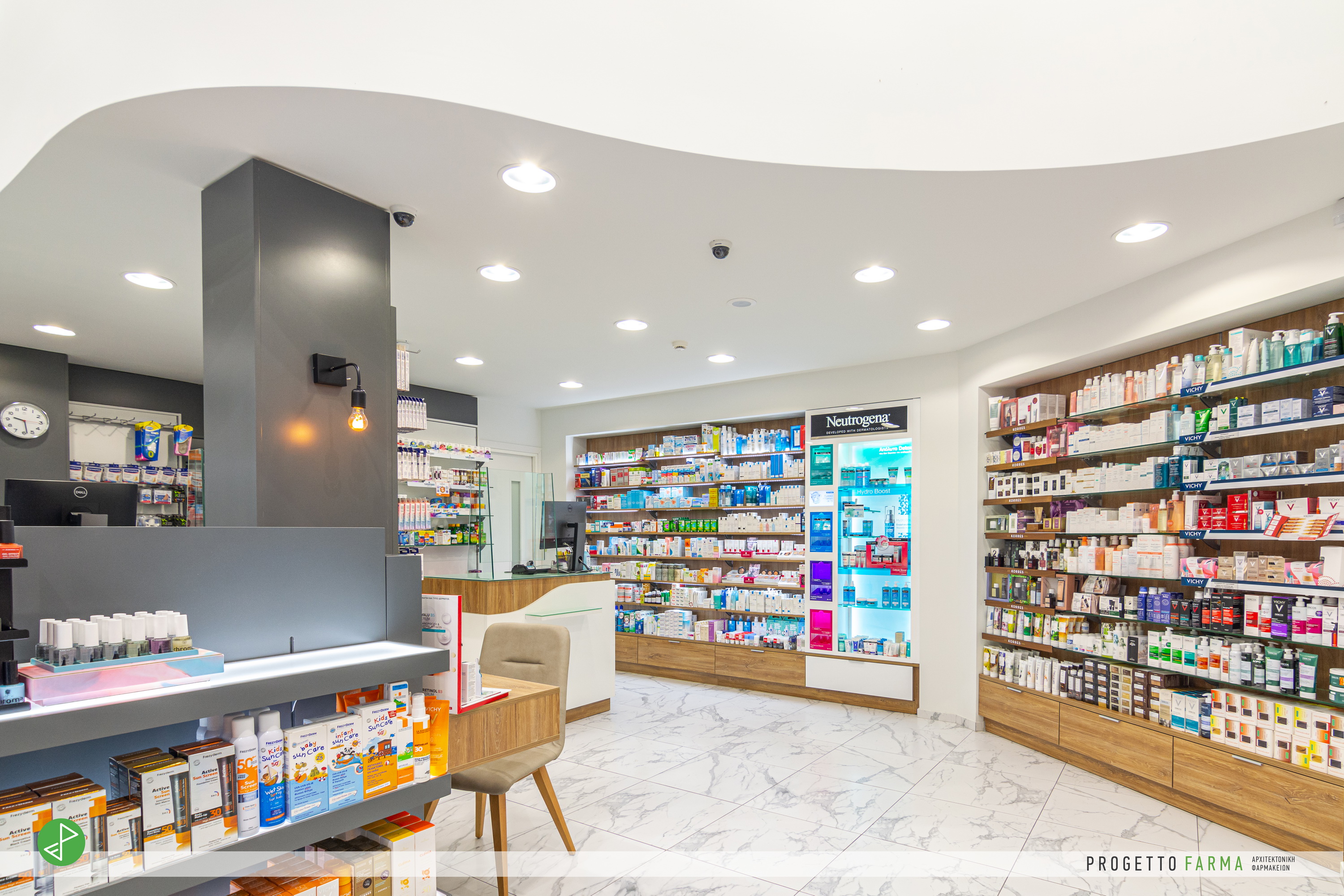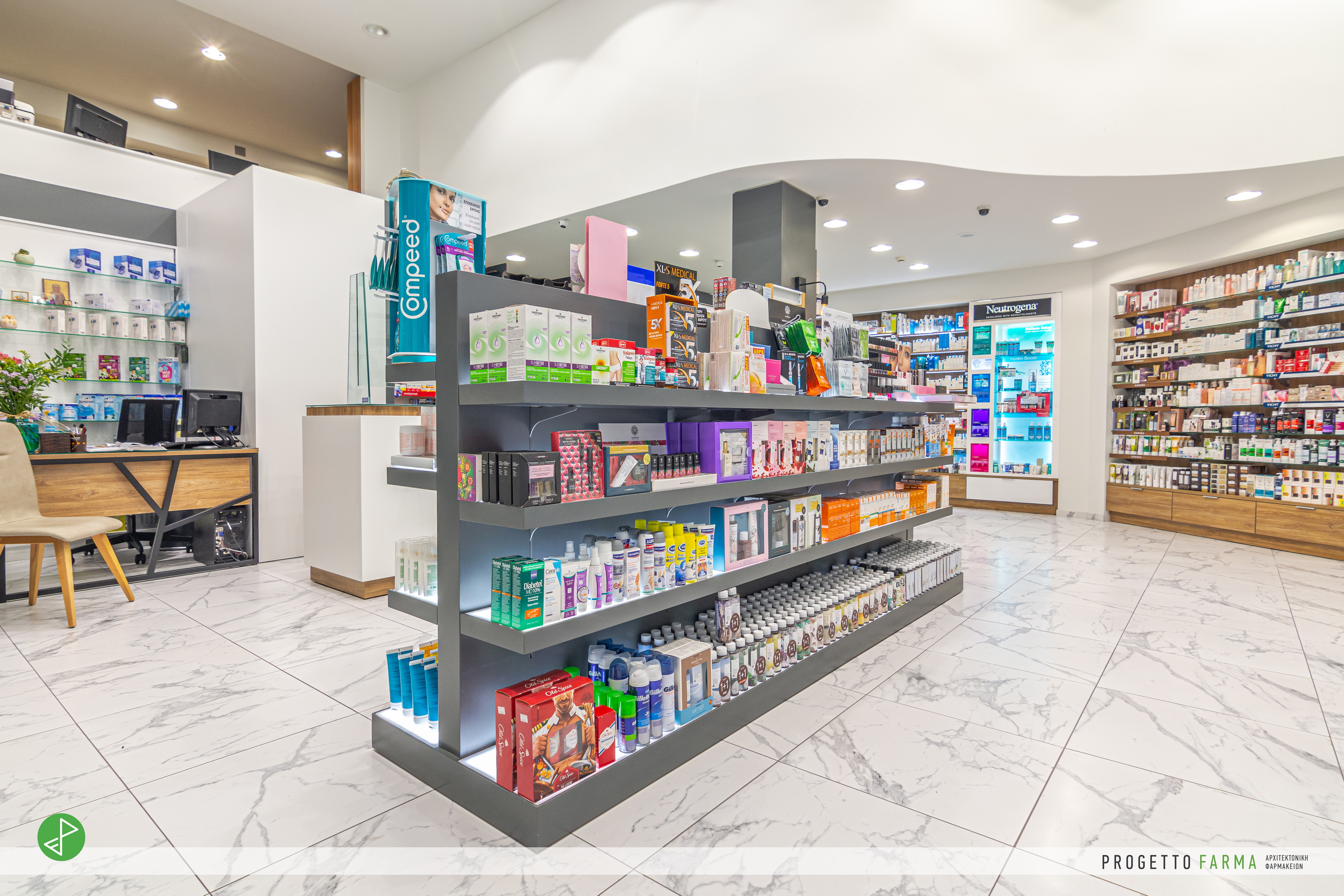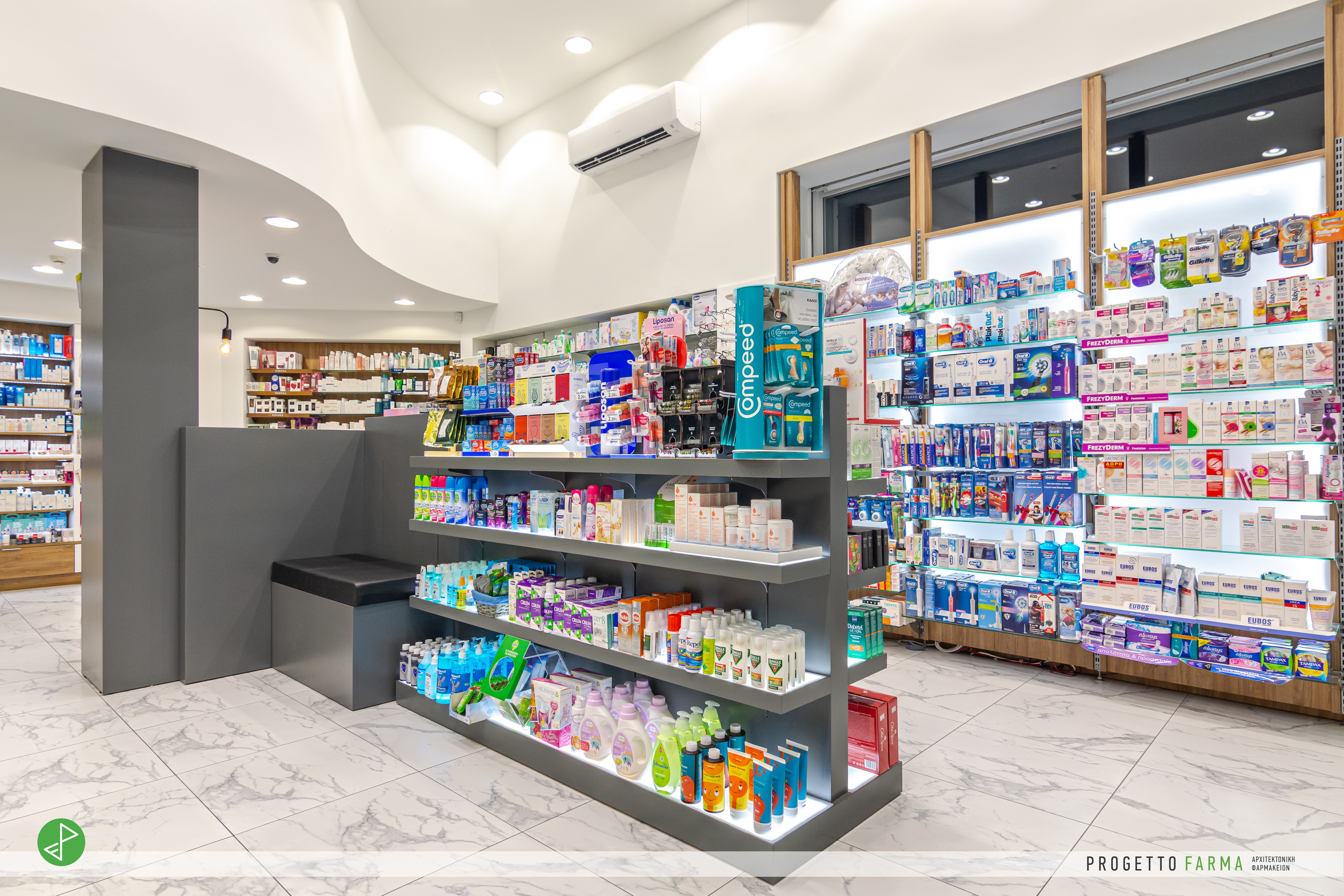 · Επίπλωση φαρμακοπωλείου και βοηθητικών χώρων από την Progetto Farma.