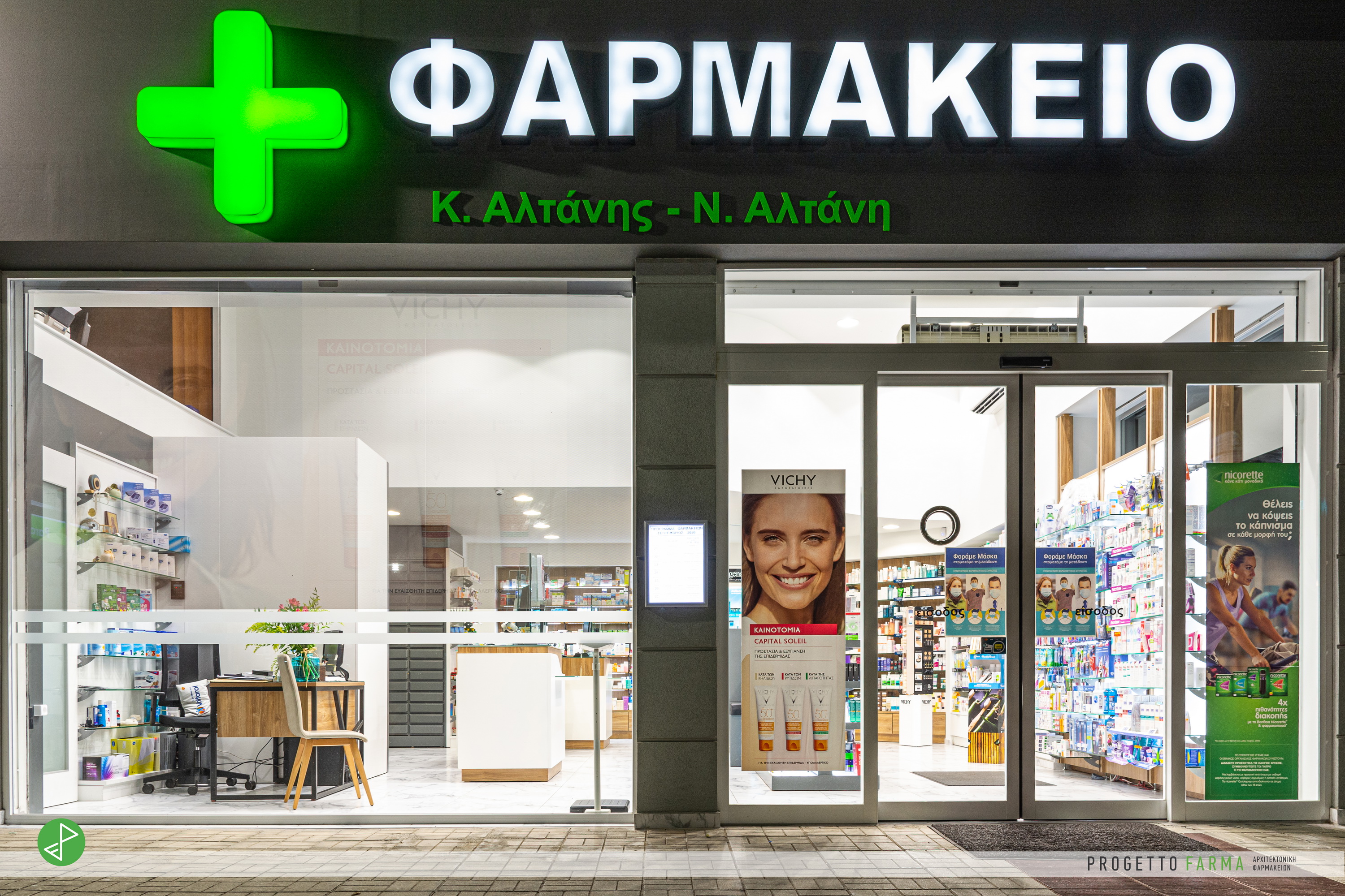 Στην νέα περίοδο του φαρμακείου που σηματοδοτεί η σύμπλευση παλαιάς και νέας γενιάς, ο κος. Αλτάνης και η κόρη του Νίκη Αλτάνη εμπιστεύτηκαν την Progetto Farma.