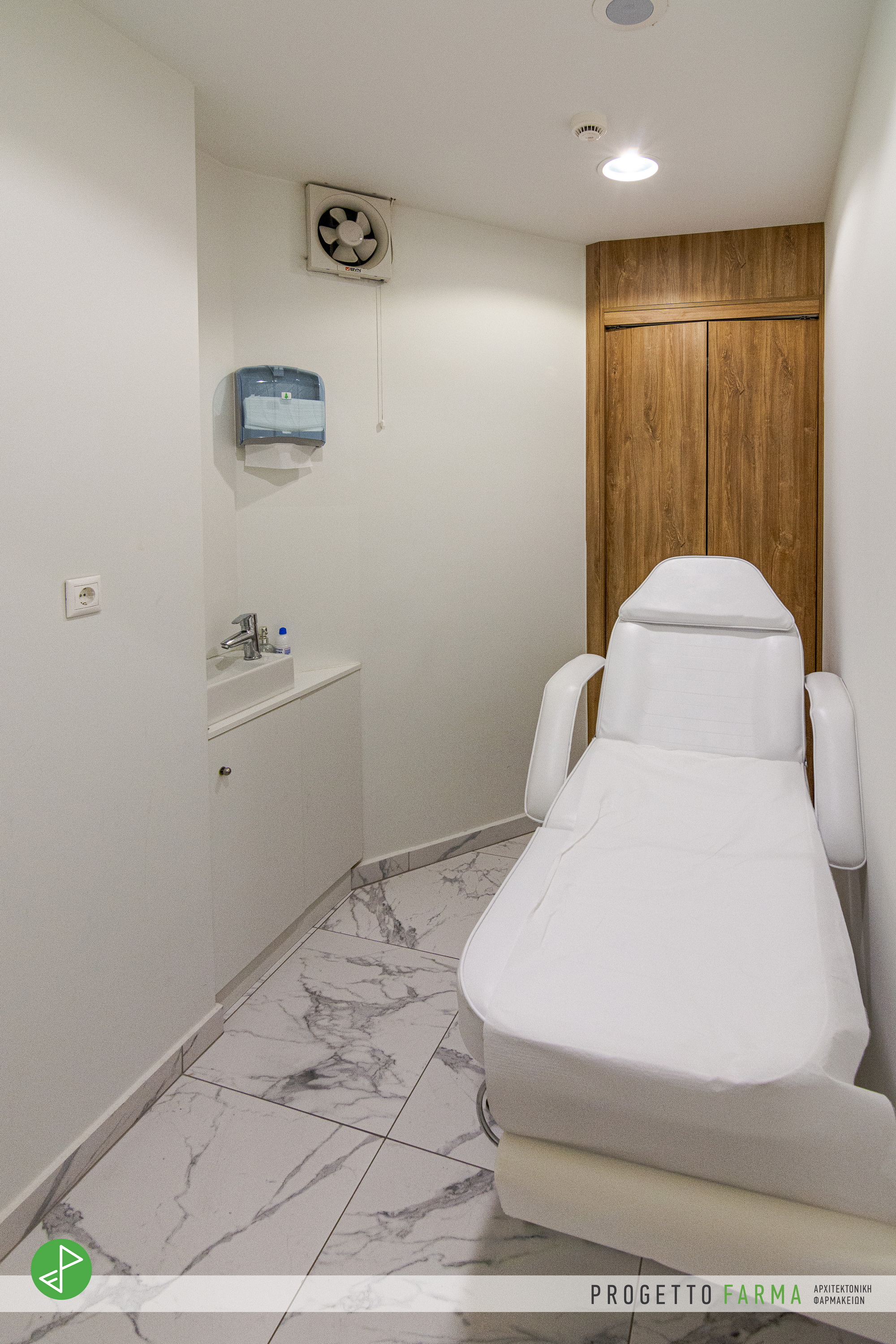 Καμπίνα Αισθητικής σε ξεχωριστό χώρο στο πίσω μέρος του φαρμακείου που φέρει όλες τις απαραίτητες λειτουργίες και εξοπλισμό.
