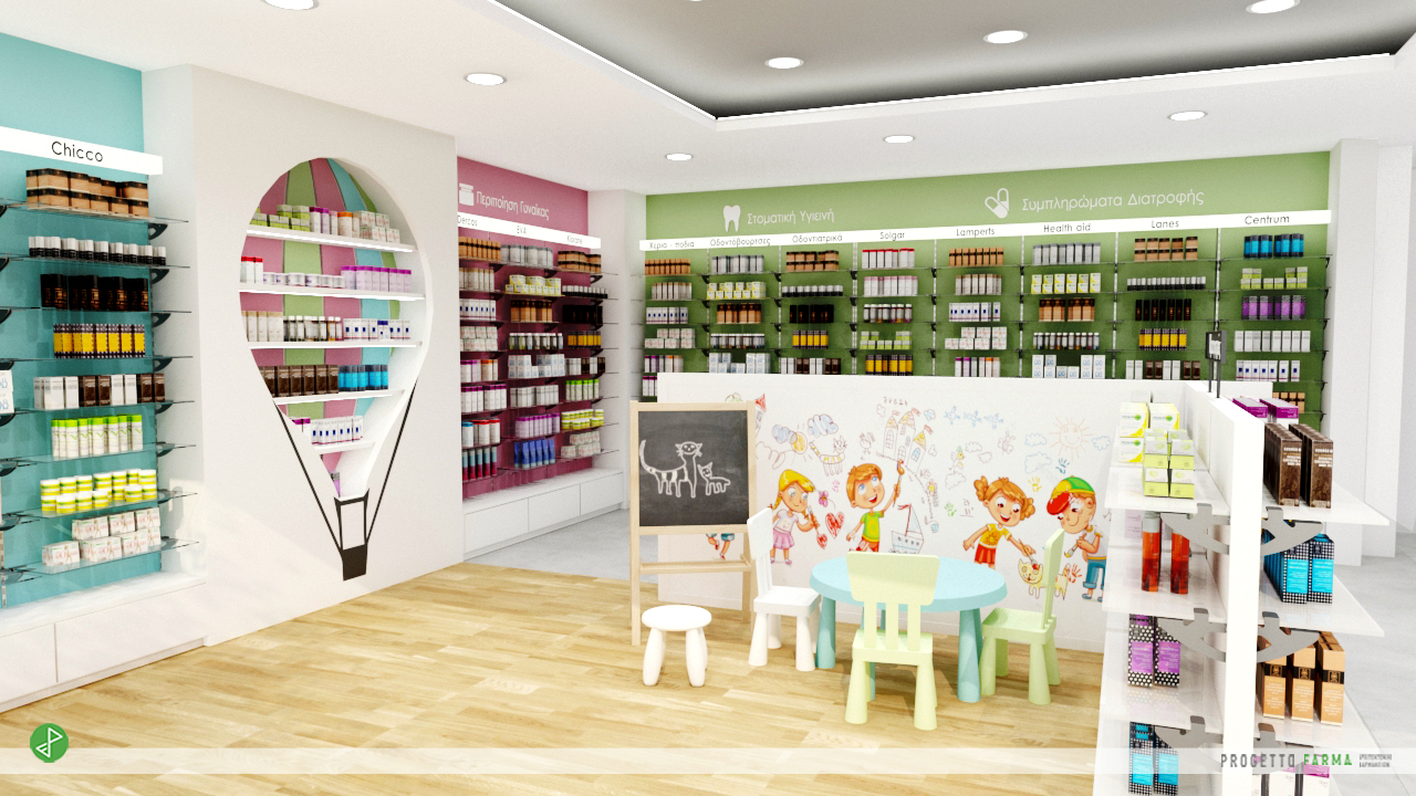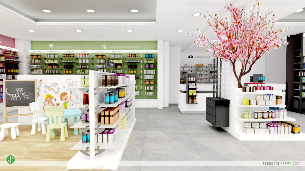 · Επίπλωση φαρμακοπωλείου και βοηθητικών χώρων από την Progetto Farma.