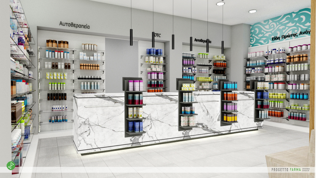 · Επίπλωση φαρμακοπωλείου και βοηθητικών χώρων από την Progetto Farma.