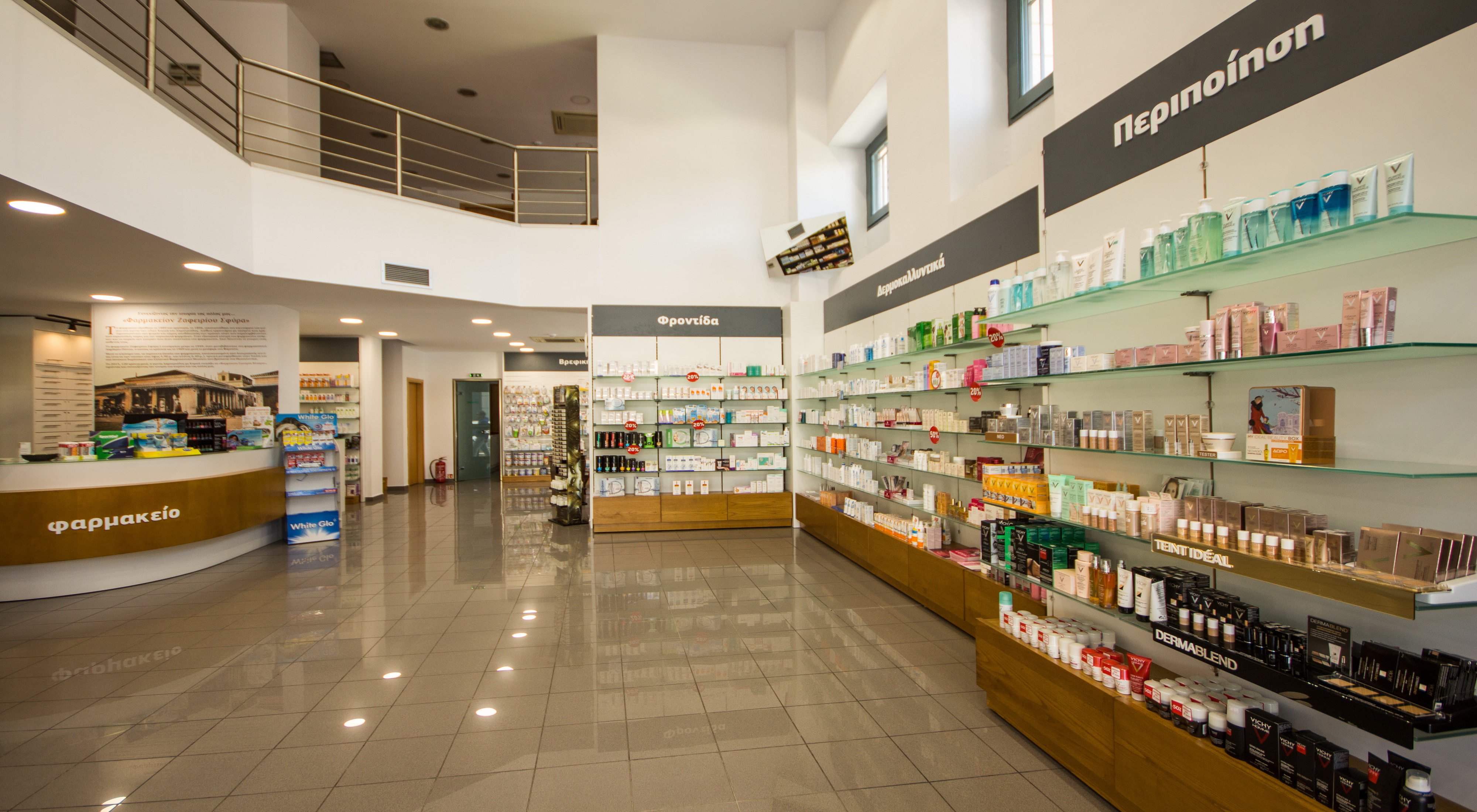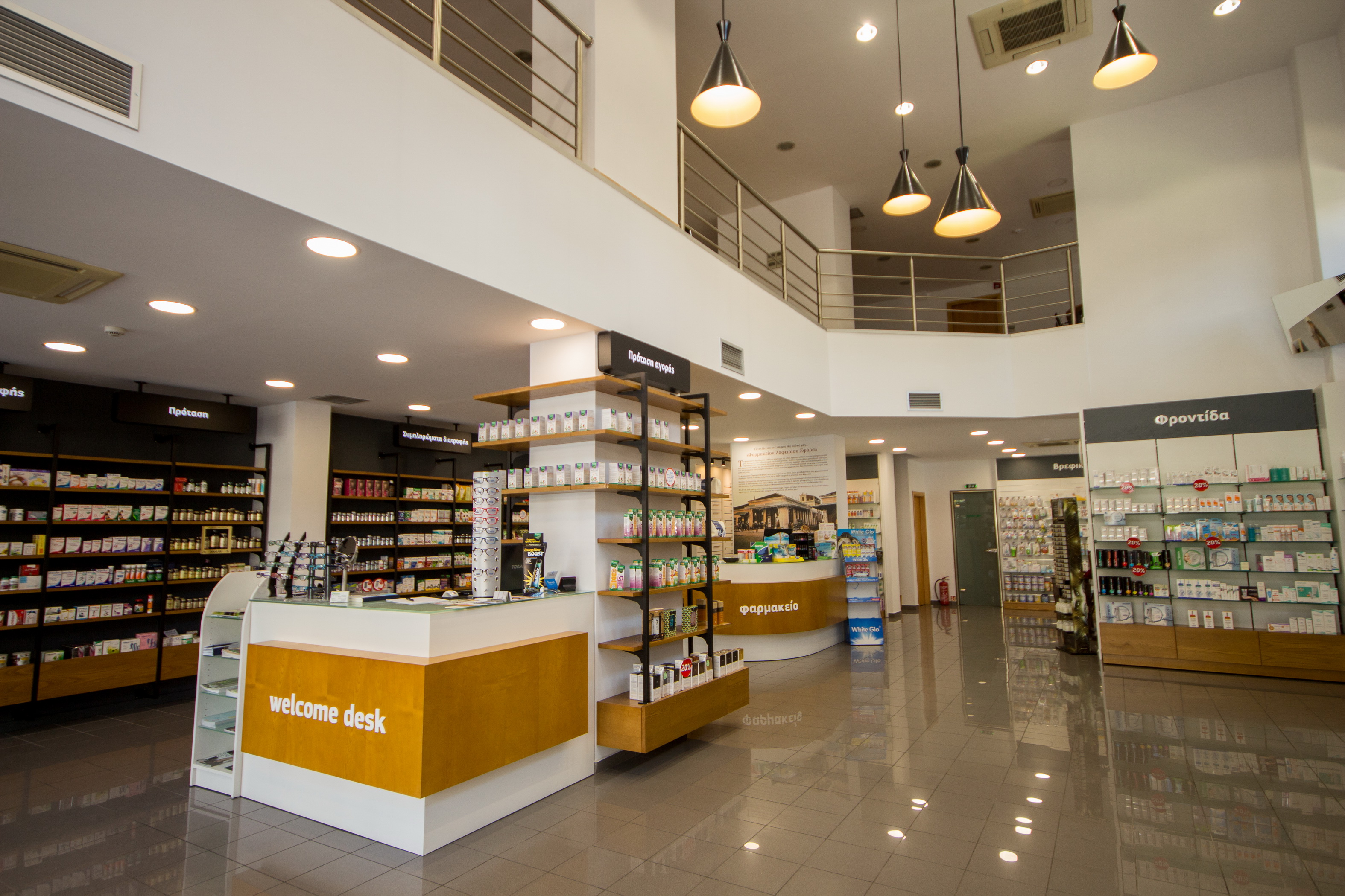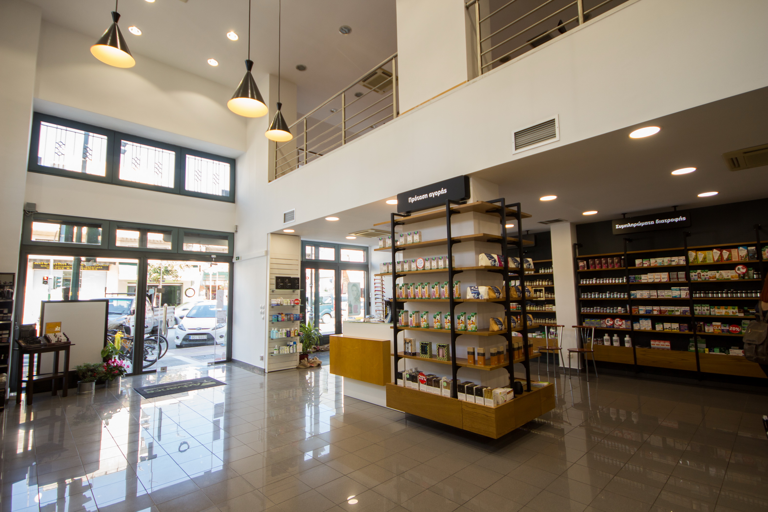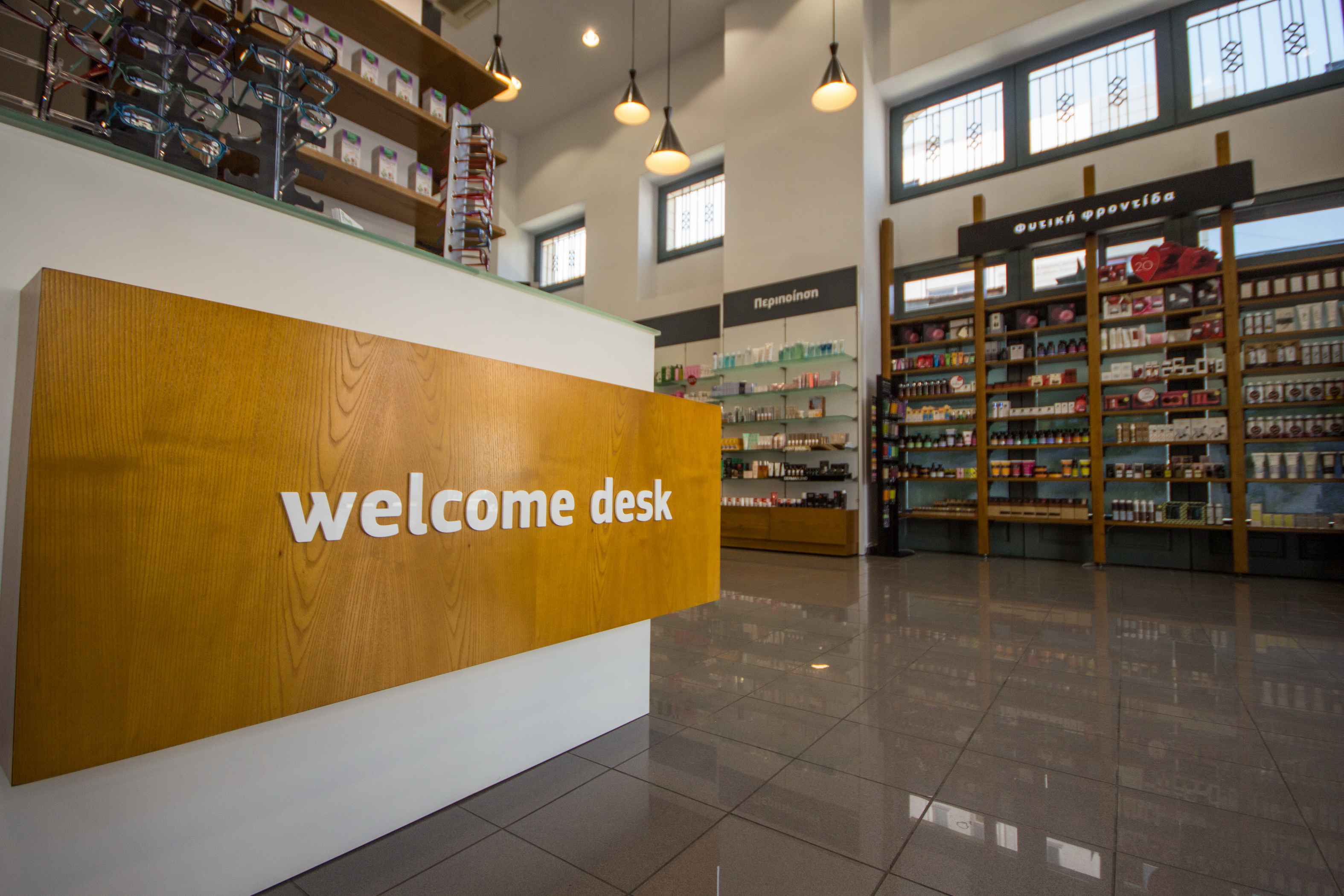 Ένα απο τα πιο γνωστά και κεντρικά φαρμακεία της πόλης του Βόλου επέλεξε την Progetto Farma για την μεταφορά του σε νέο μεγαλύτερο κατάστημα. Ο νέος χώρος, επί της οδού Δημητριάδος, είναι ένα πανέμορφο νεοκλασσικό κτίριο με ιδιαίτερα αρχιτεκτονικά στοιχεία. Επιλέξαμε λοιπόν να προτείνουμε ένα συνδυασμό του νεοκλασσικού και του μοντέρνου στοιχείου. Στην πανέμορφη πρόσοψη του κτιρίου αποφασίσαμε να μην παρέμβουμε καθόλου, παρα μόνο με την επιγραφή του φαρμακείου και τον αρχιτεκτονικό φωτισμό. Στο εσωτερικό του φαρμακείου οι γραμμές είναι μοντέρνες, όμως η επιλογή ξύλινων επιφανειών και μεταλλικών στοιχείων στην επίπλωση δένουν αρμονικά με την γενικότερη αισθητική.